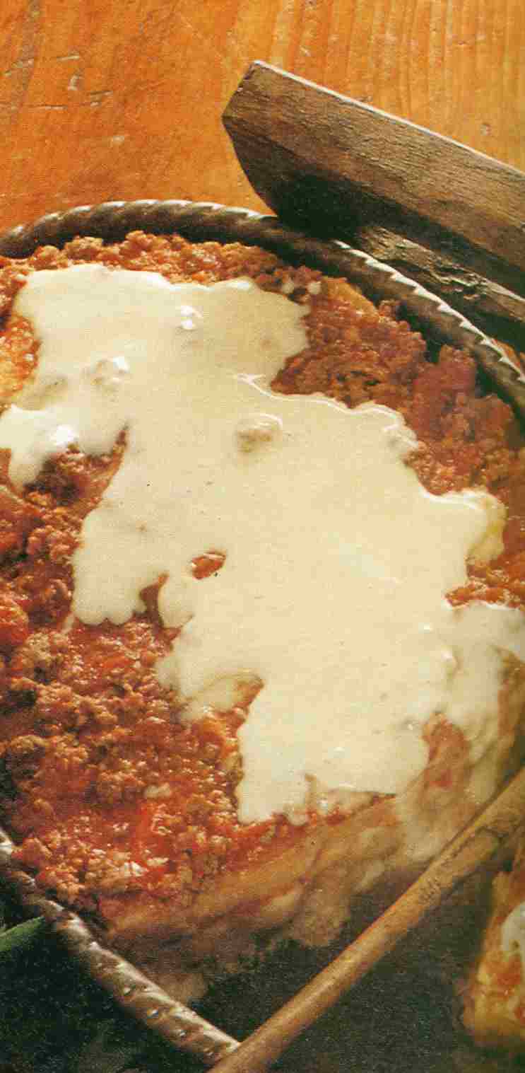 condita con ragù di carne e besciamella e messa nel forno a gratinare.
