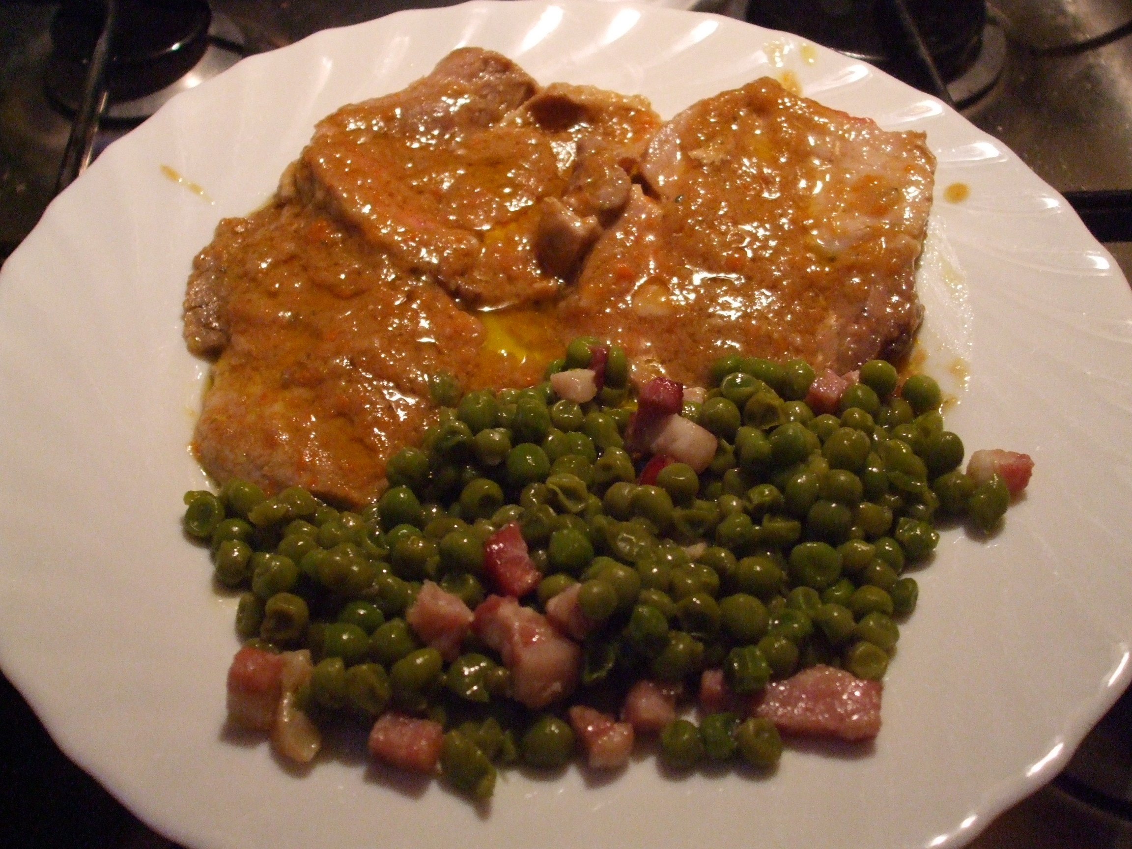 burro, aggiungere i piselli, insaporire per 10 minuti.